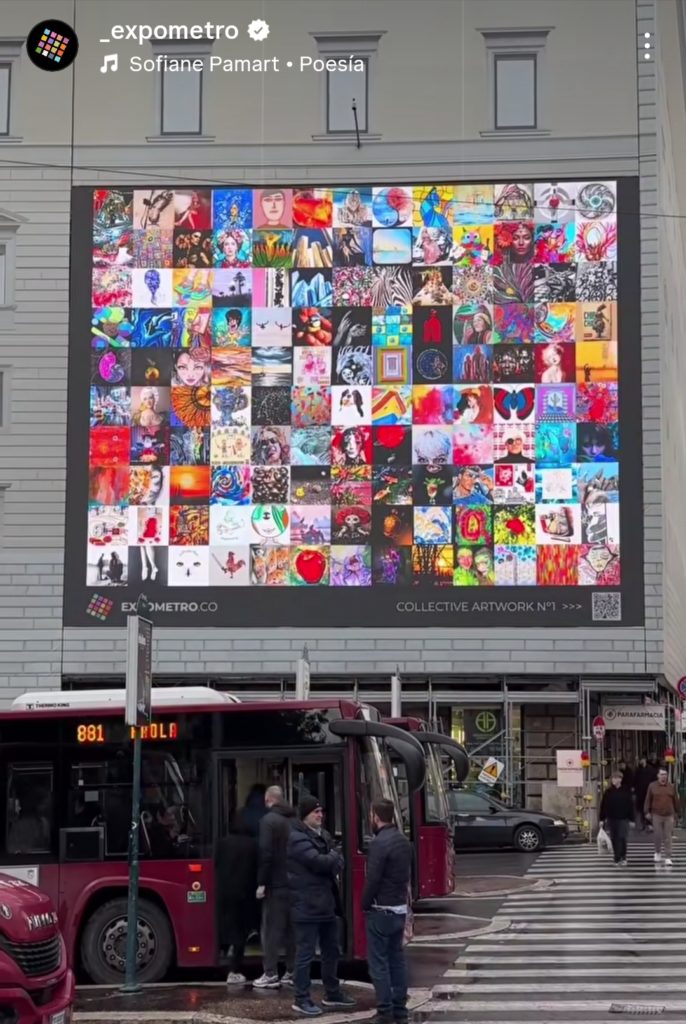 This exhibition brings together 550 artists from 70 countries, showcasing 700 artworks on 2 giant Led screens, located near Ponte Vittorio Emanuele II (Vatican/Castel Sant’Angelo aera).